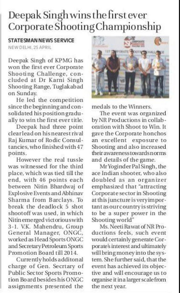Past Events CORPORATE SHOOTING CHALLENGE 2.0 1st Shoot To Win Open All India Public Sector Sports Promotion Board T-20 Cricket Tournament 2019 FABeer : FIFA World Cup 2018 Screening @ Aqua, Thé Park 1st CORPORATE SHOOTING CHALLENGE 2018 Media Contact Us. Name Email Address Message Submit